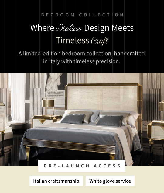 A reduced pre-launch selection of Italian bedroom designs is now available for early viewing. This edit has been intentionally kept limited, offering access to select pieces at pre-launch pricing, along with personalised guidance and white-glove service.