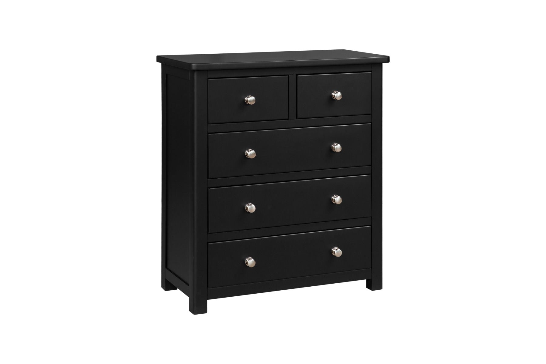 Apollo 3+2 Drawer Chest Black offers a mix of drawer sizes that makes day to day bedroom storage more straightforward, from folded clothing to smaller accessories.