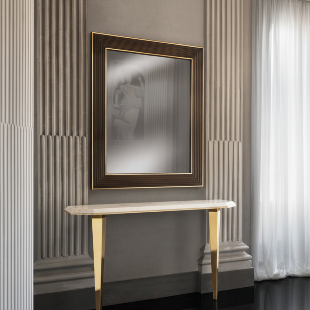 Diamanté mirrors by Adora in the Diamanté Collection add the perfect finishing touch to your bedroom furniture. The generous rectangular design is beautifully framed with a dual-tone border combining warm wood and gleaming gold accents, echoing the sophisticated details found throughout the collection. Whether wall-mounted above the dressing table or displayed as a statement piece, this mirror enhances light and space while tying together the refined aesthetic of the Diamanté range. An essential piece for completing your elegant Irish bedroom