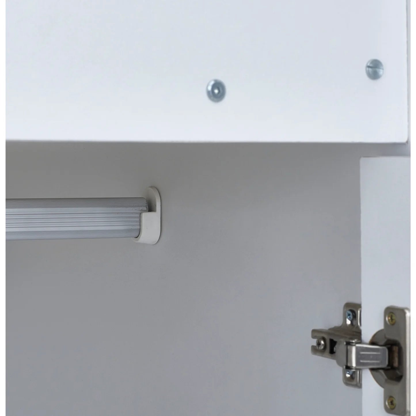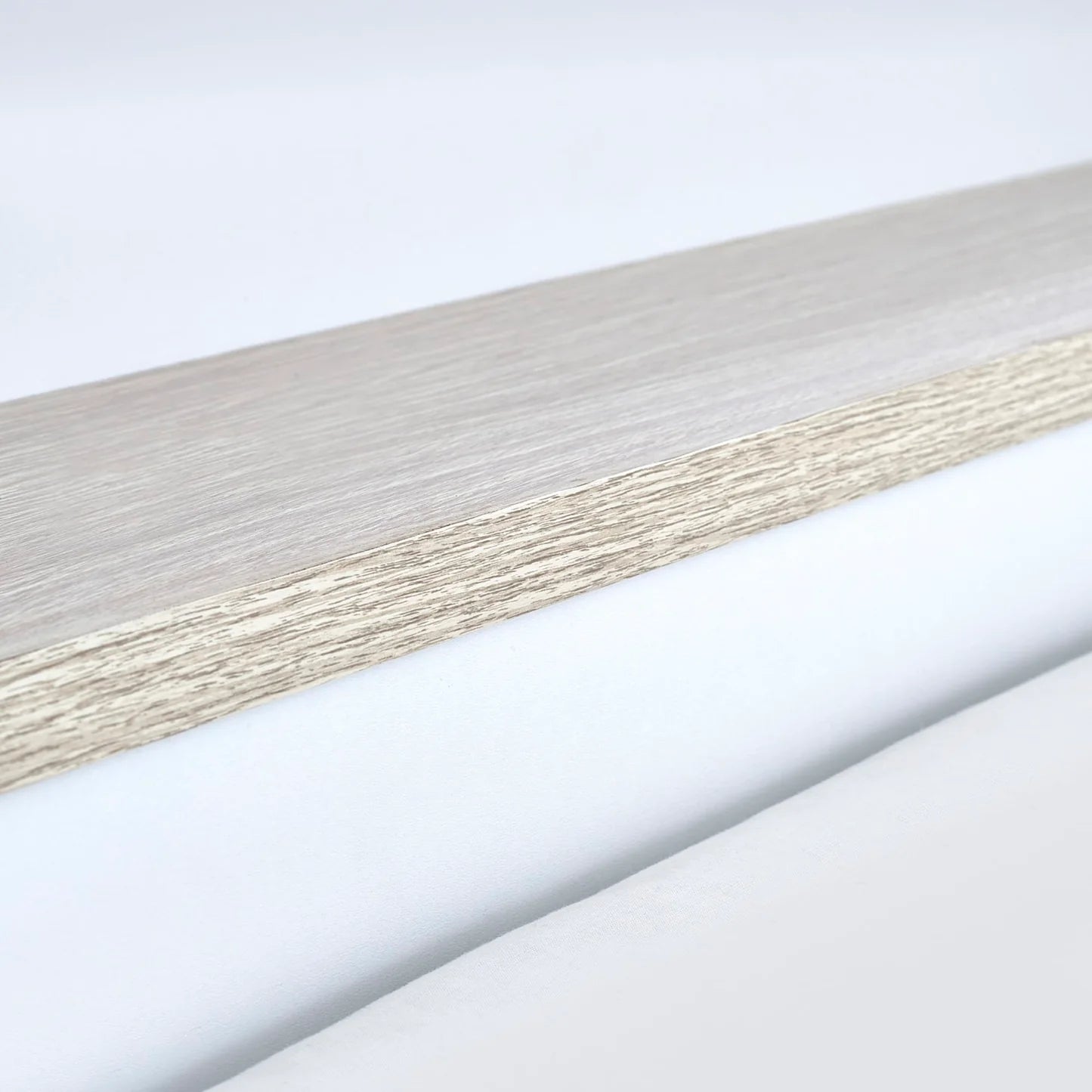 - Pale woodgrain and white finish for a calm, modern look
