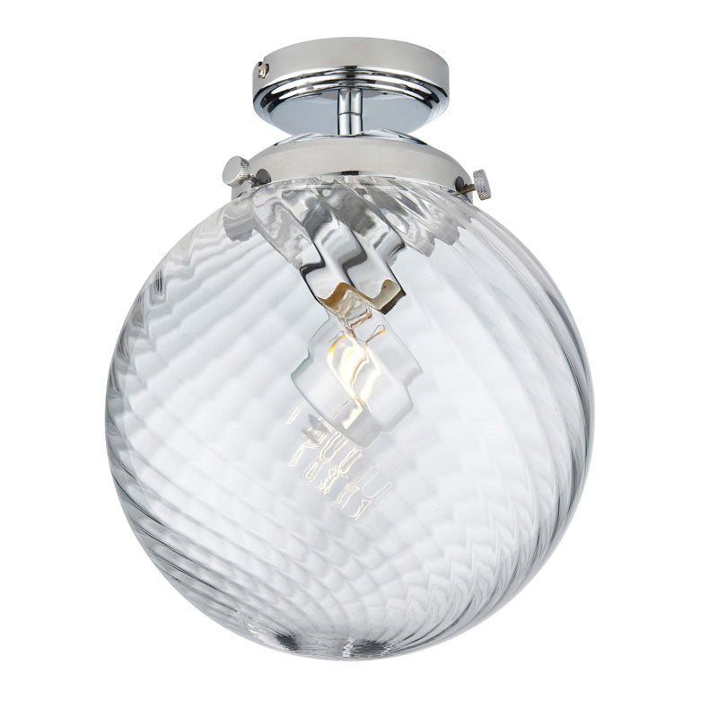 Technical Specifications: With chrome plated metalwork and beautiful, rounded clear rippled glass detail, this ceiling light brings an appealing modern style to the bathroom. IP44 rated for safe use in bathroom, with dimmable function and perfect for use with E27 LED lamps.