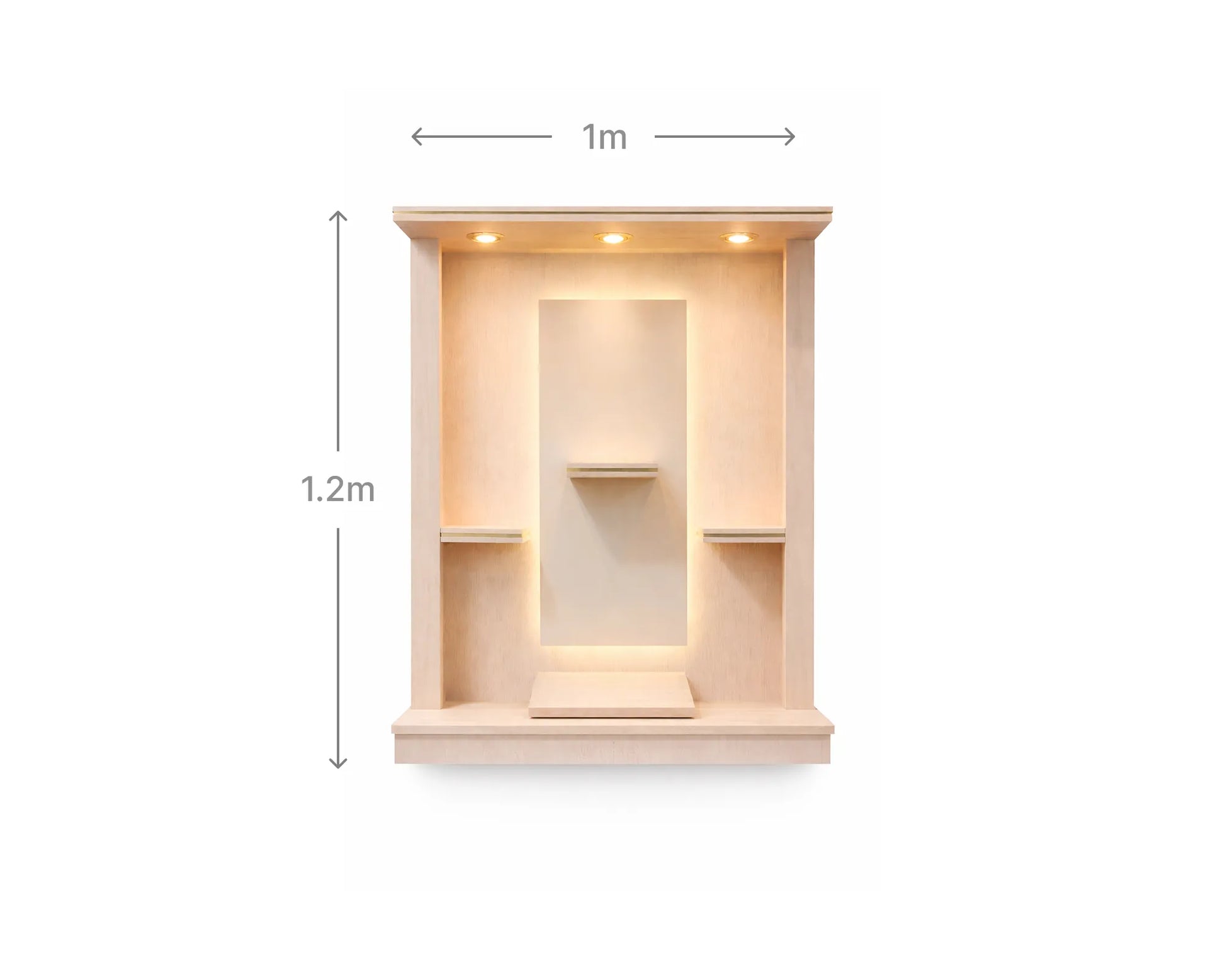 Its clean architectural form and balanced proportions allow it to integrate effortlessly into both contemporary and traditional interiors. The elevated back panel creates a natural visual focus for idols and sacred objects, helping you establish a dedicated and peaceful area for daily prayer without occupying floor space.