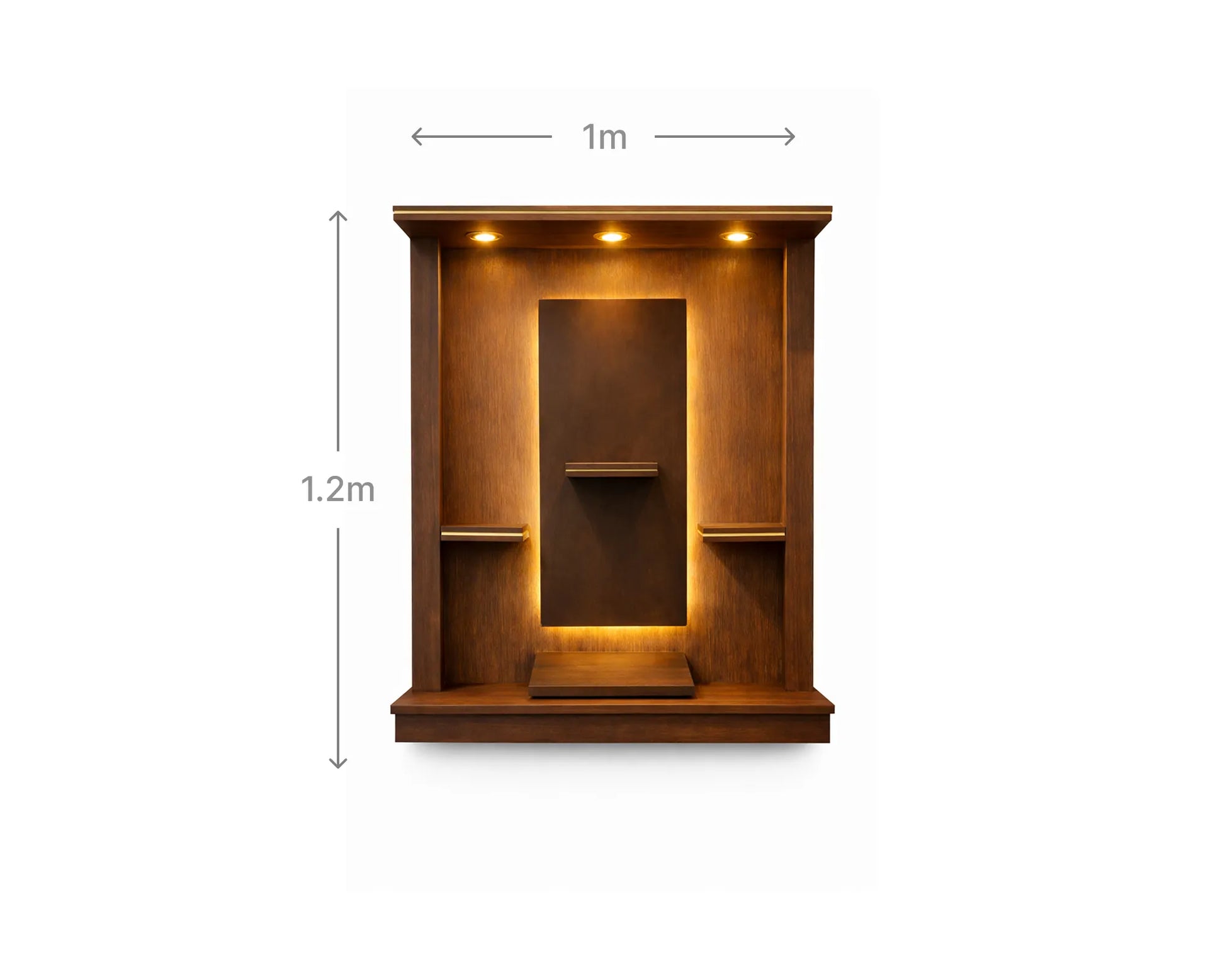 Its clean architectural form and balanced proportions allow it to integrate effortlessly into both contemporary and traditional interiors. The elevated back panel creates a natural visual focus for idols and sacred objects, helping you establish a dedicated and peaceful area for daily prayer without occupying floor space.