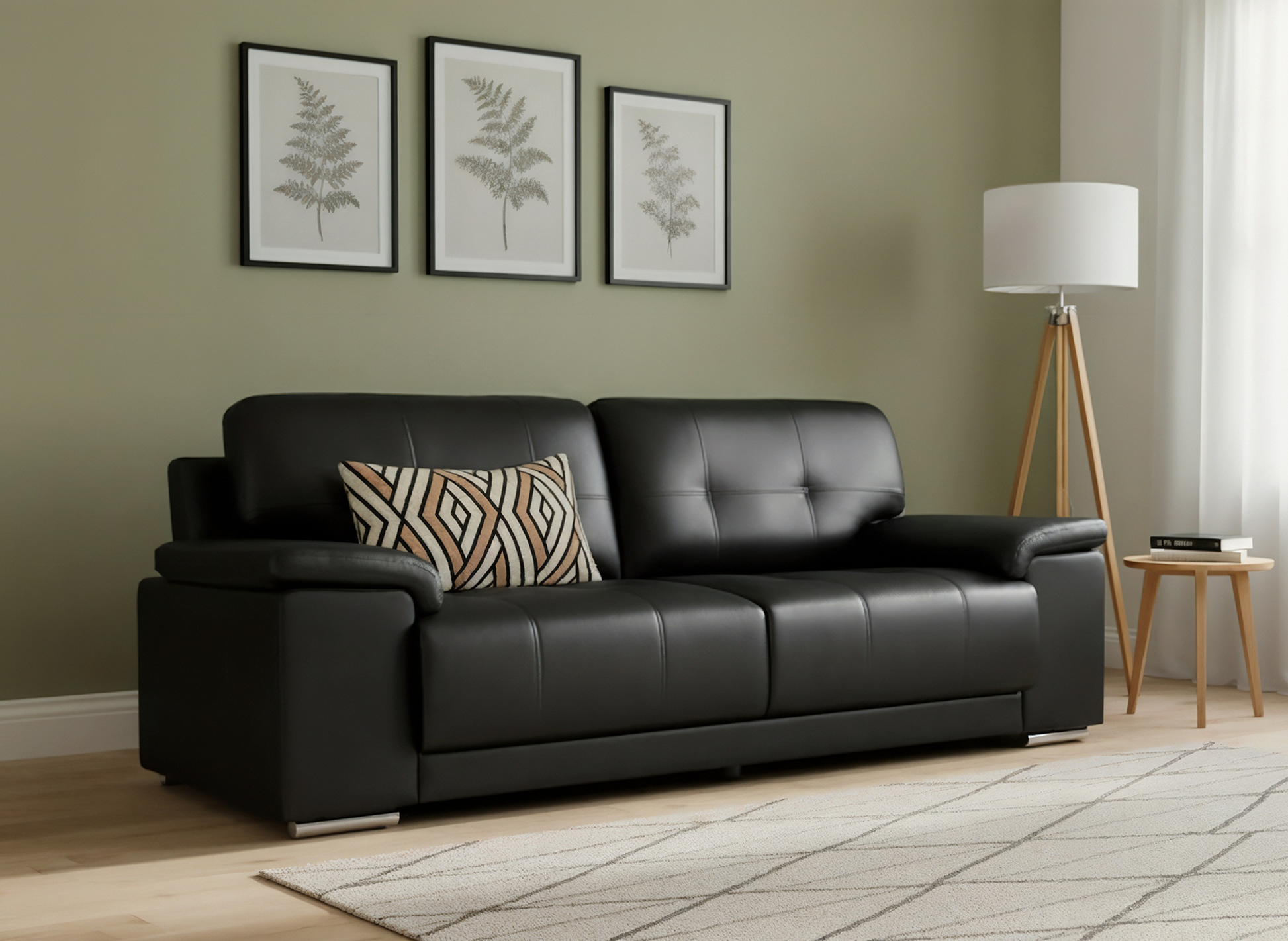 The Nero brings modern design, everyday comfort, and unbeatable value together in one elegant package. Crafted with smooth black faux leather, it offers the look and feel of premium upholstery without the high-maintenance upkeep. The clean lines, supportive cushioning, and gently curved armrests create a relaxed, contemporary look that suits any home, from new apartments to busy family spaces.
