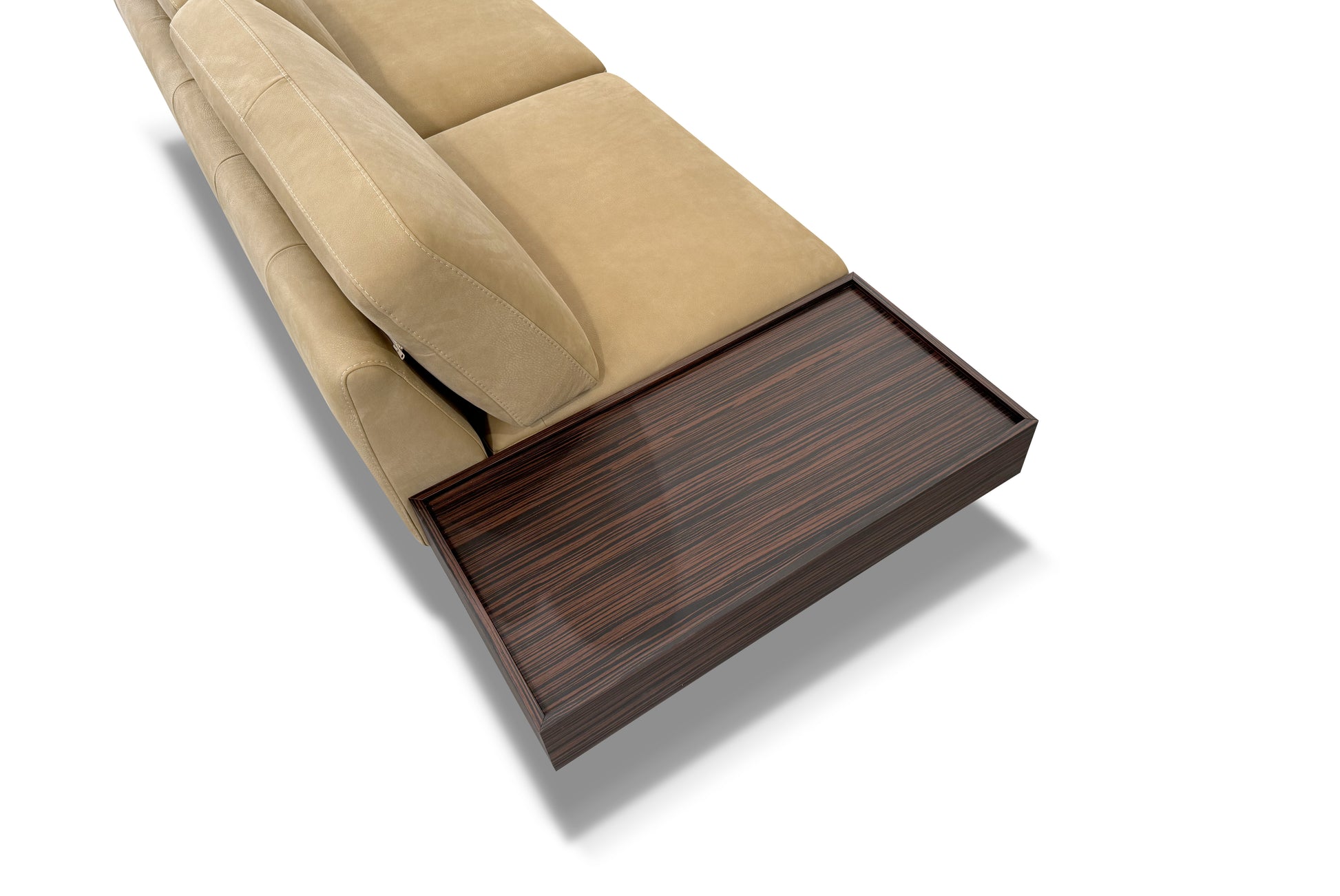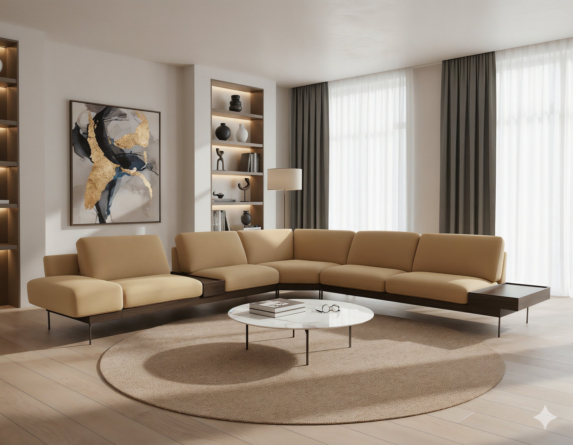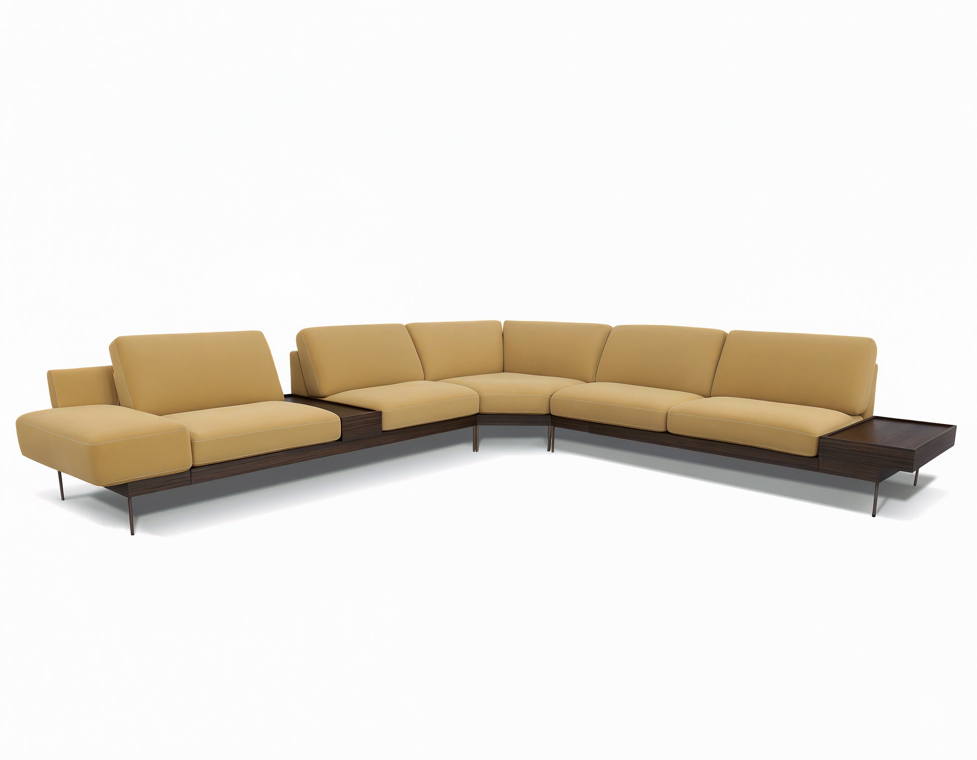 Designed with both form and function in mind, the Plane Corner Sofa can be customised with integrated consoles and an open bench, blending practical elegance with architectural poise. Its low-profile silhouette and precision-crafted, slender legs create a striking floating effect, infusing any space with lightness and grace. Every bespoke sofa can be tailored in size, configuration, and finish, ensuring a one-of-a-kind statement piece.